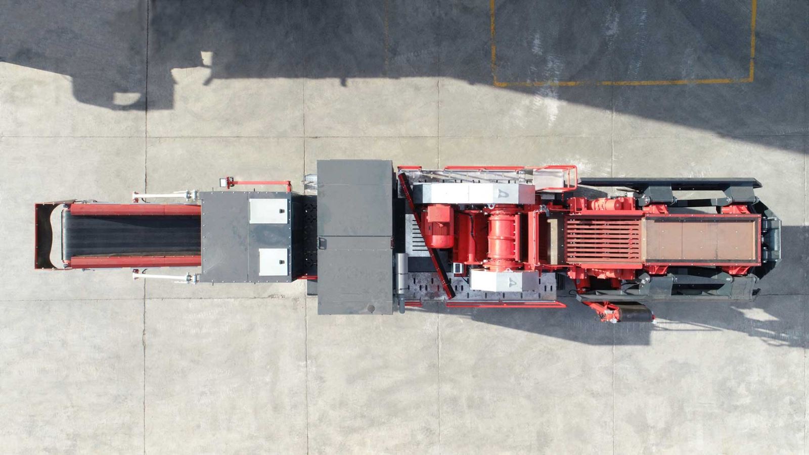 Its durable and heavy-duty track system provides mobility on all types of grounds. The mobile jaw crusher is controlled with a wireless remote and can go as fast as 1.2 km/h.